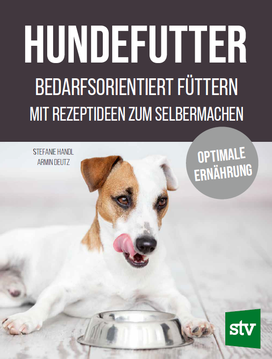 Hier bestellenIm Dezember 2022 erschien mein erstes Buch, geschrieben zusammen mit Armin Deutz, Fachtierarzt für Wild- und Zootiere und Spezialist für Jagdhunde, Wildtierkrankheiten und Tierseuchen. Wir möchten darin Basiswissen über Ernährung vermitteln, welches jeder Hundehalter haben sollte, und über praktische Fütterung, Auswahl des richtigen Futters und "Ernährungsmythen" aufklären. Wer das Futter für seinen Hund selbst zubereiten will, findet Tipps und Anregungen zum Selberkochen, Wissenswertes über mögliche Zutaten und was vermieden werden soll sowie Rezeptbeispiele. Es ist im Stocker Verlag erschienen und kann dort direkt bestellt werden.